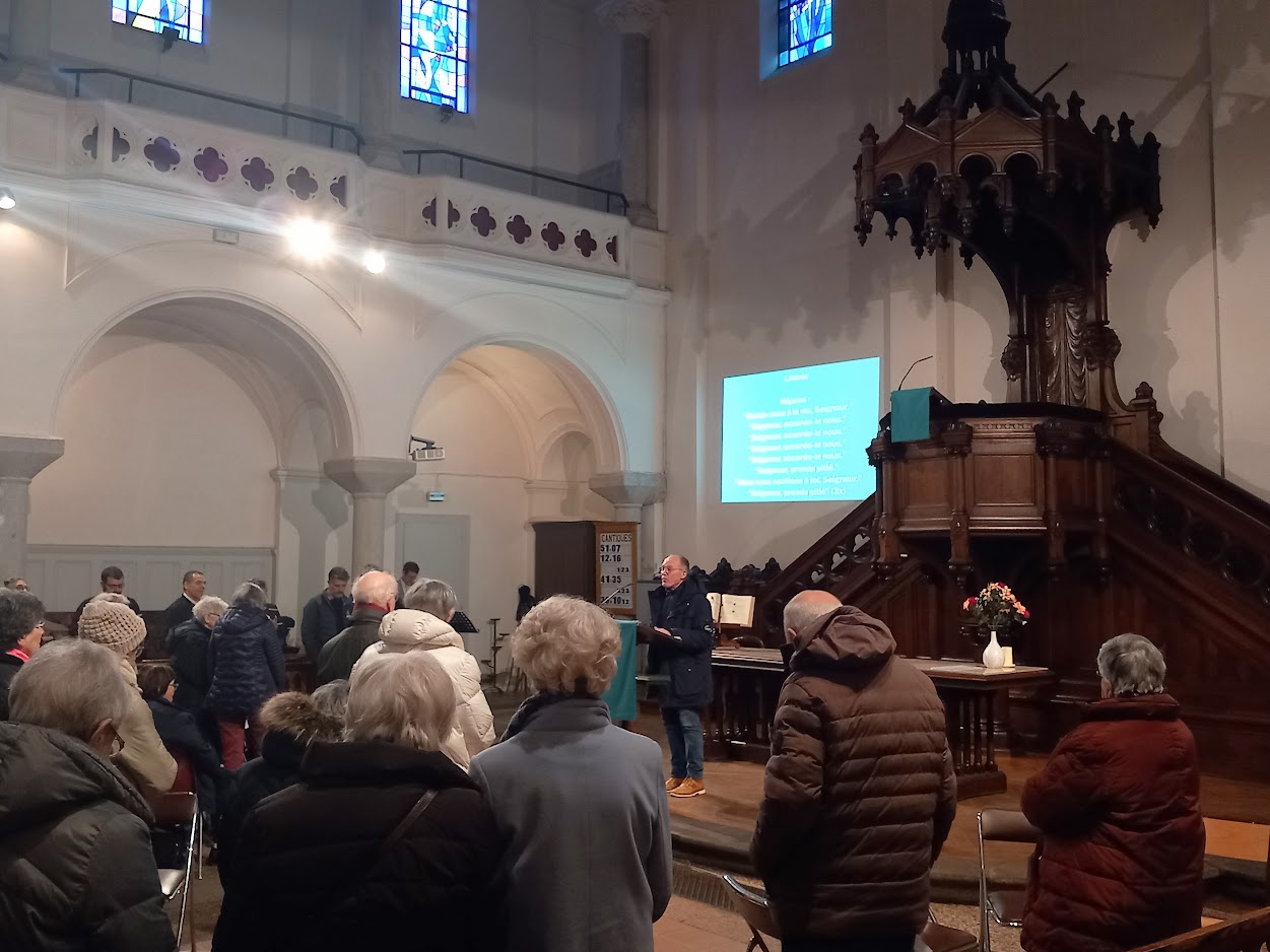 Cette dernière rassemblait trois Églises protestantes (protestante unie, adventiste, évangélique apostolique), l’Église catholique romaine, et, ce qui est plus exceptionnel, des représentants de l’Église catholique arménienne (Saint-Chamond) et de l’Église apostolique arménienne. Comme les supports, au niveau international, avaient été préparés par les chrétiens arméniens, tous ont apprécié de découvrir ces communautés présentes sur l’agglomération. Le texte biblique choisi était un extrait de l’Épître aux Éphésiens, chapitre 4, versets 1 à 13.