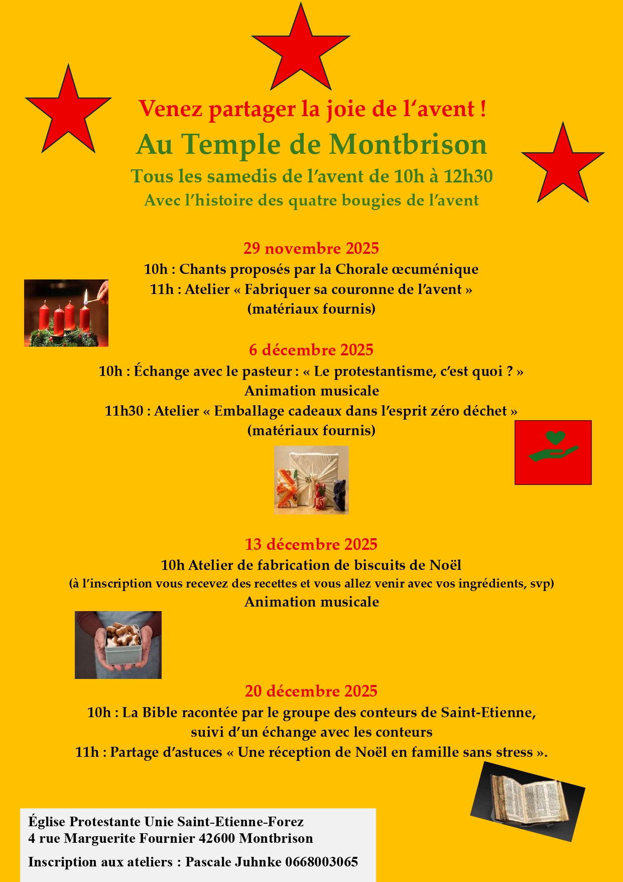 - 11h: Atelier fabrication couronne de l’Avent